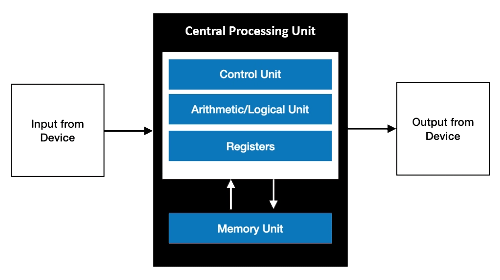 CPU: Central Processing Unit – this is the “brain” that contains the ALU and Control Unit.